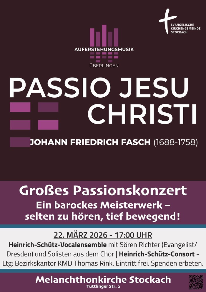 Großes Passionskonzert Ein barockes Meisterwerk – selten zu hören, tief bewegend! In der Melanchthonkirche Stockach