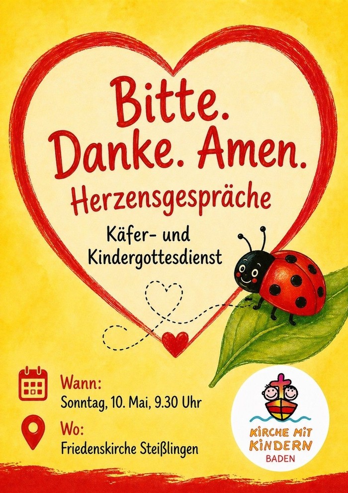 Sonntag, 10. Mai Bitte. Danke. Amen. Herzensgespräche Käfer- und Kindergottesdienst in der Friedenskirche Steißlingen